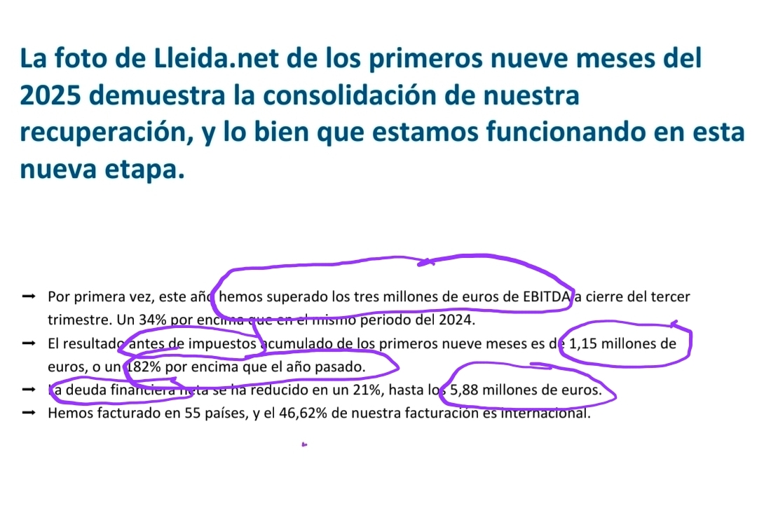 El año pasado el 4T dio un EBITDA de 1,03 millones. Así que debería superar los 4 millones sin problemas. Todo lo que dé este trimestre será crecimiento. El neto, aún mejor, dio 866 en todo el 2024 y ya en el 3T da un acumulado de 1,15 millones. Lo incongruente es que con los datos del año pasado llegó a cotizar casi 1.40 y ahora con 1 millón más de EBITDA y creo que duplicado el neto valga 20 céntimos menos.