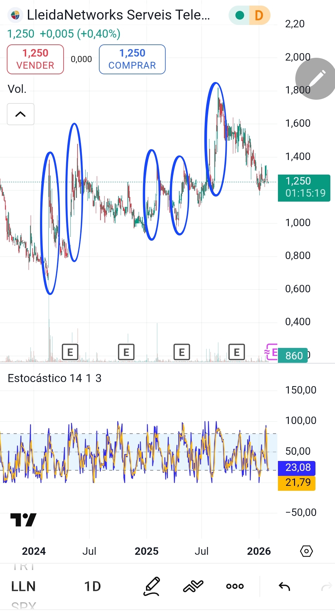 El mensual no ha terminado tan mal como da la sensación. Ahora hace falta que se cumpla el patrón de velas con ese martillo verde. Y aunque me haga repetido, no veo razón que justifique esta caída desde los 1.82 euros, no ha habido un fundamento que lo justifique en ningún momento, ni EBITDA, ni neto, ni negocio, ni deuda, ni clientes, ni contratos; por el contrario, todo indica que la empresa está consolidando perfectamente el antes y el después entre el 2023 y 2024. Y por supuesto no veo ninguna posibilidad de que el 4Q sea malo y menos el total del ejercicio 2025. Así que paciencia y a esperar los resultados anticipados.