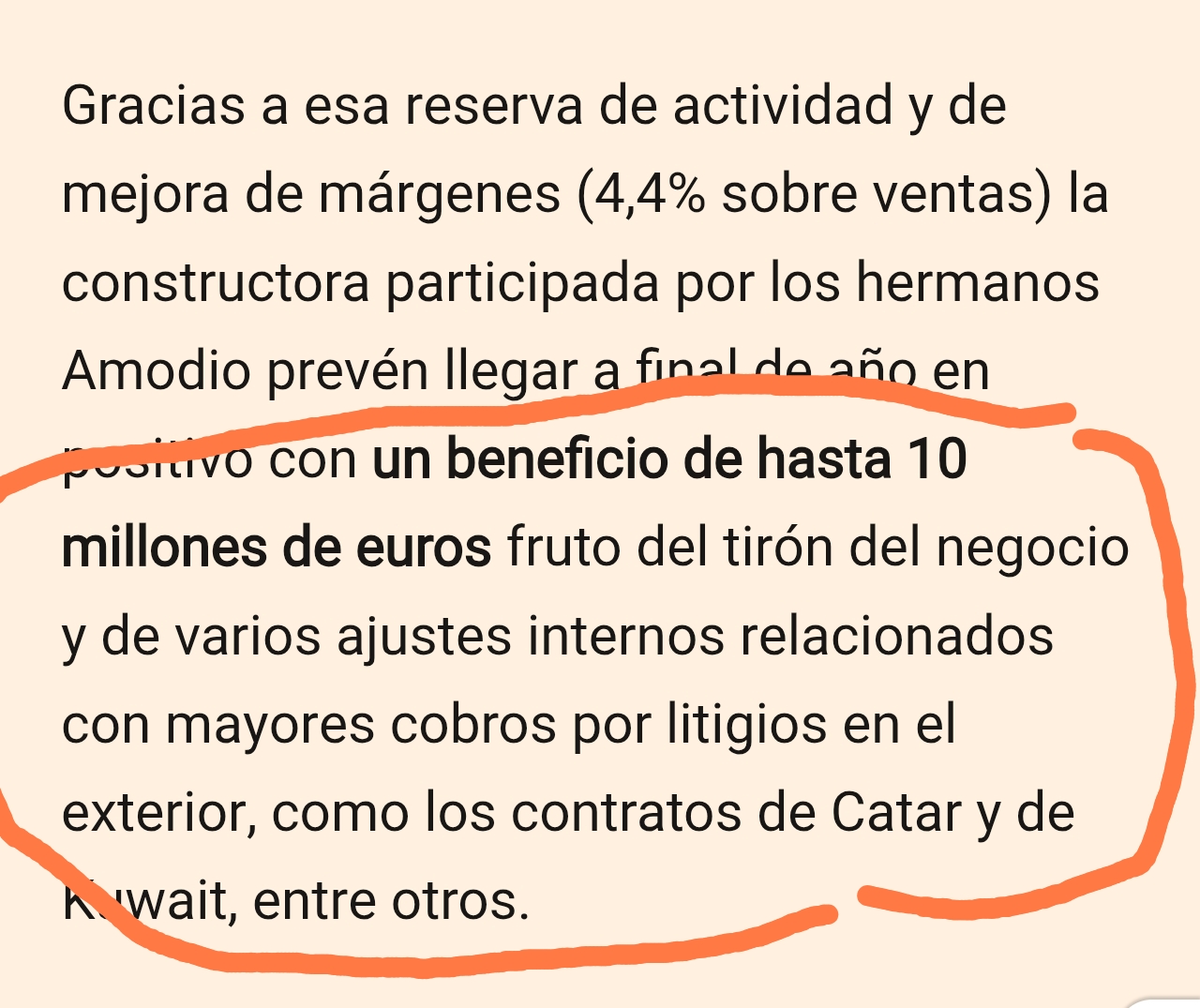 Creo que se apuntan por fin como ganancias el resultado del metro de Doha... Entiendo que cuando se ..........