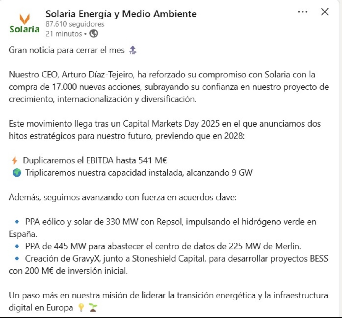 La única manera de que no lo cierre a corto, es que el mercado (hasta el lunes nada porque USA está cerrado) tenga unos días positivos y Solaria consiga tener otro impulso que la lleva a cotas superiores, que no hay que descartarlo, pero por el momento no está teniendo fuerza.