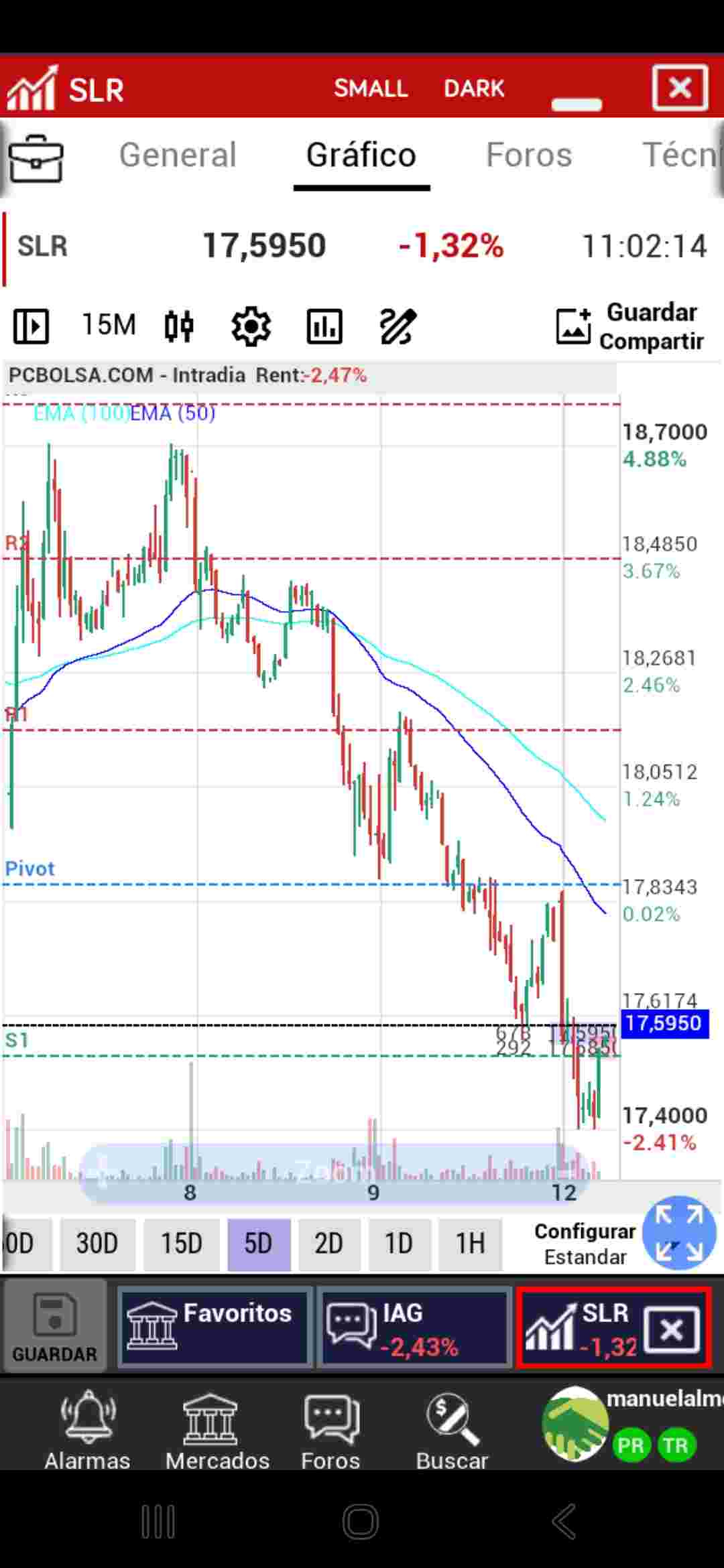 5 días, desde máximos.