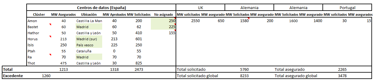 No asignado: Ha recibido permiso por REE pero no queda claro a que clúster perteneceseria.