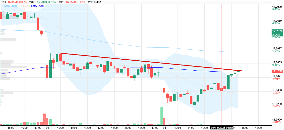 Ya rompío la apertura, 16,80 a ver si se va acercando al 17 y luego al azul.