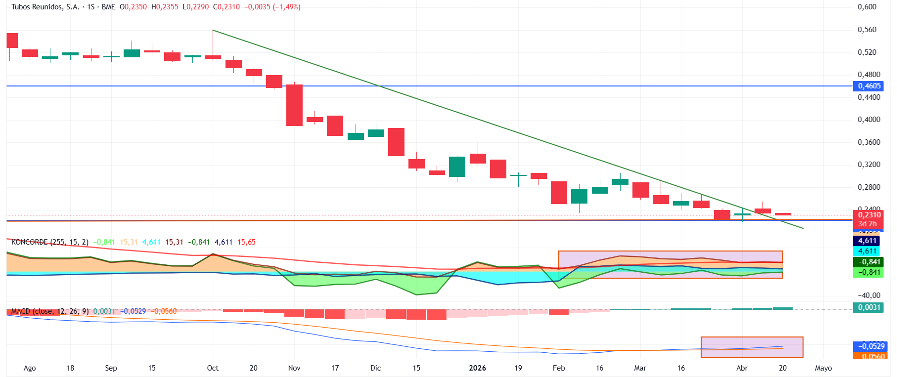 MMFF van entrando en el valor . MACD cruzó al alza.
