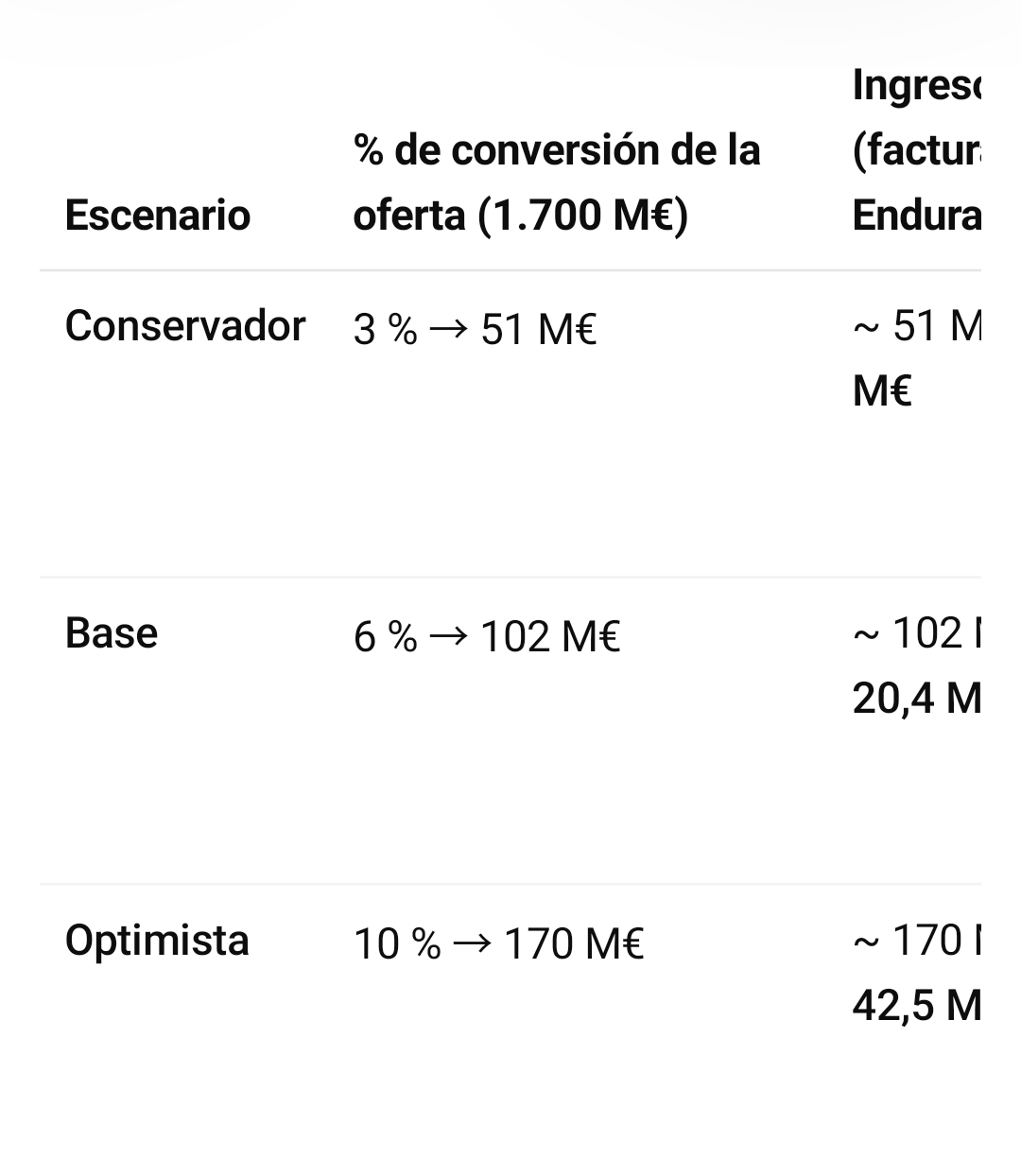 4 - En 5 meses, pasamos de un precio de conversión de 1,5 € a 3,07 € ( 105%), dilución máxima de un 4,3% o 8,6% según sean 1,5MM o 3MM.