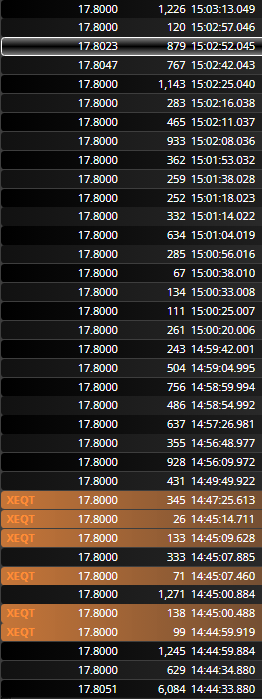 Cierre en 17,70 con un volumen impresionante otro día más de 423031 acciones negociadas de las cuales 81057 fueron negociadas en la subasta final.