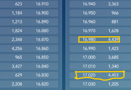cierre de sesión en 17,04 e subiendo 1,48 % con 269008 títulos negociados de los cuales 86129 fueron negociados en subasta, un abrazo y feliz tarde noche compañeros, jueves más y mejor.