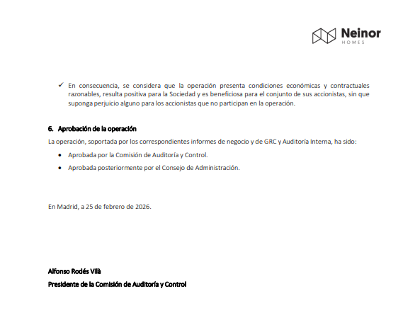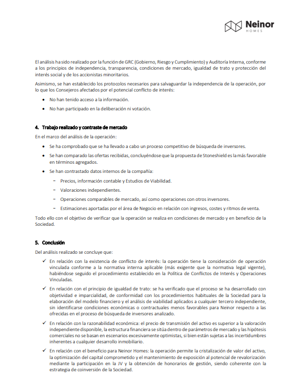 Información acciones Neinor Hom