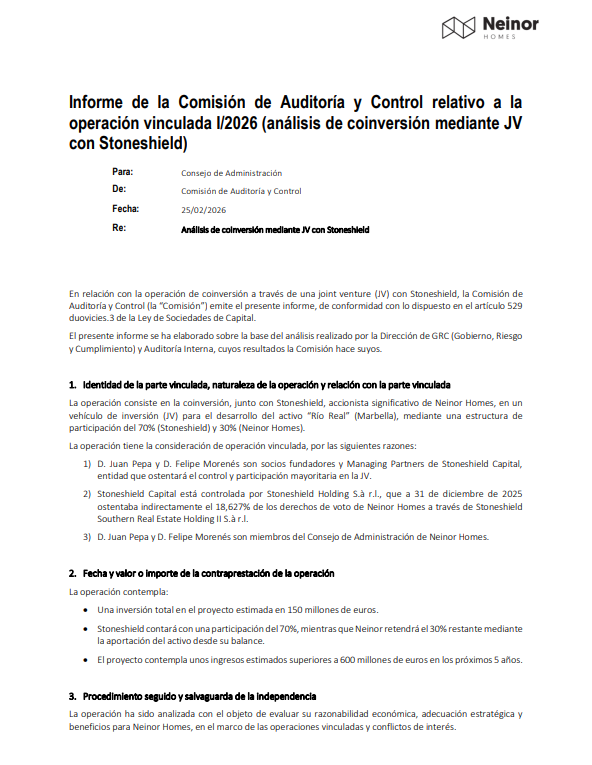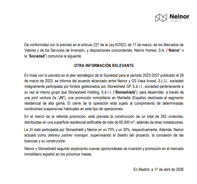 CNMV Links Neinor Hom