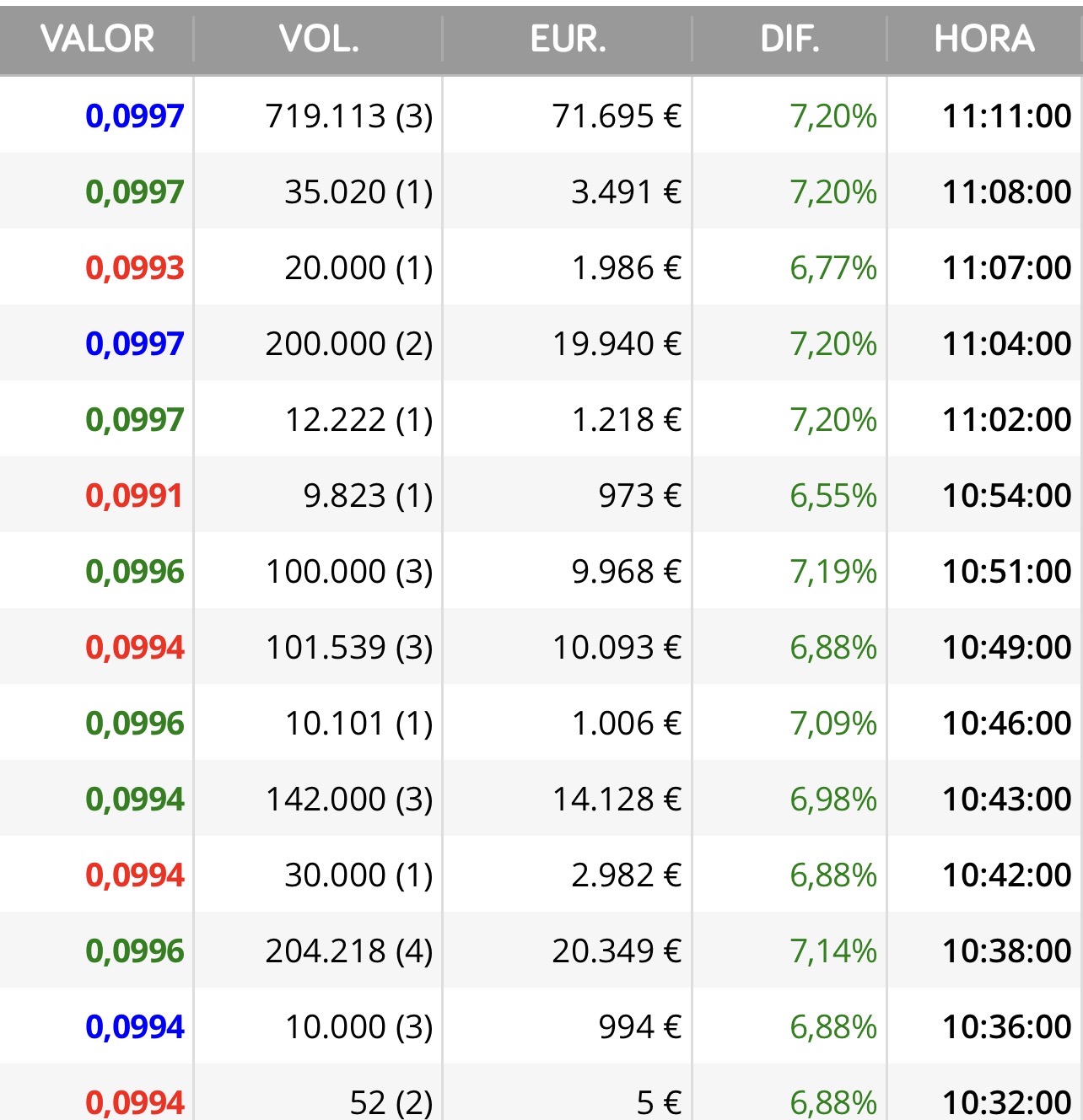 Mi amigo que compró un buen paquete el último día en 0,093 estará contento y yo por él   jjjj