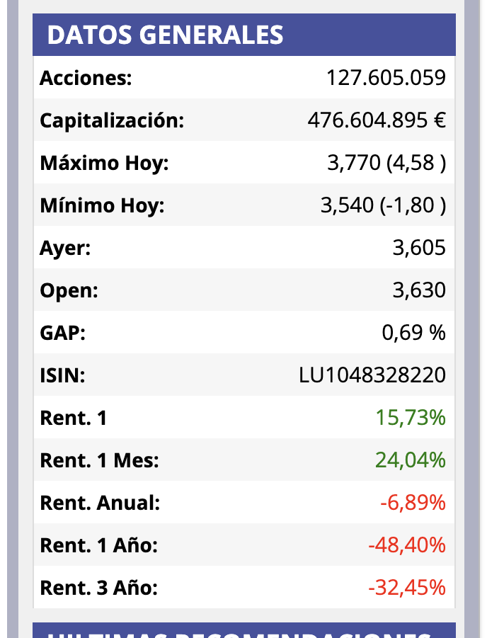 Superación canal decreciente, es la primera señal alcista desde la caída de noviembre 2025. De momento debe buscar 4,15 - 4,25 euros y si todo sigue bien, a medio plazo, probar los 5 euros. Velas diarias.