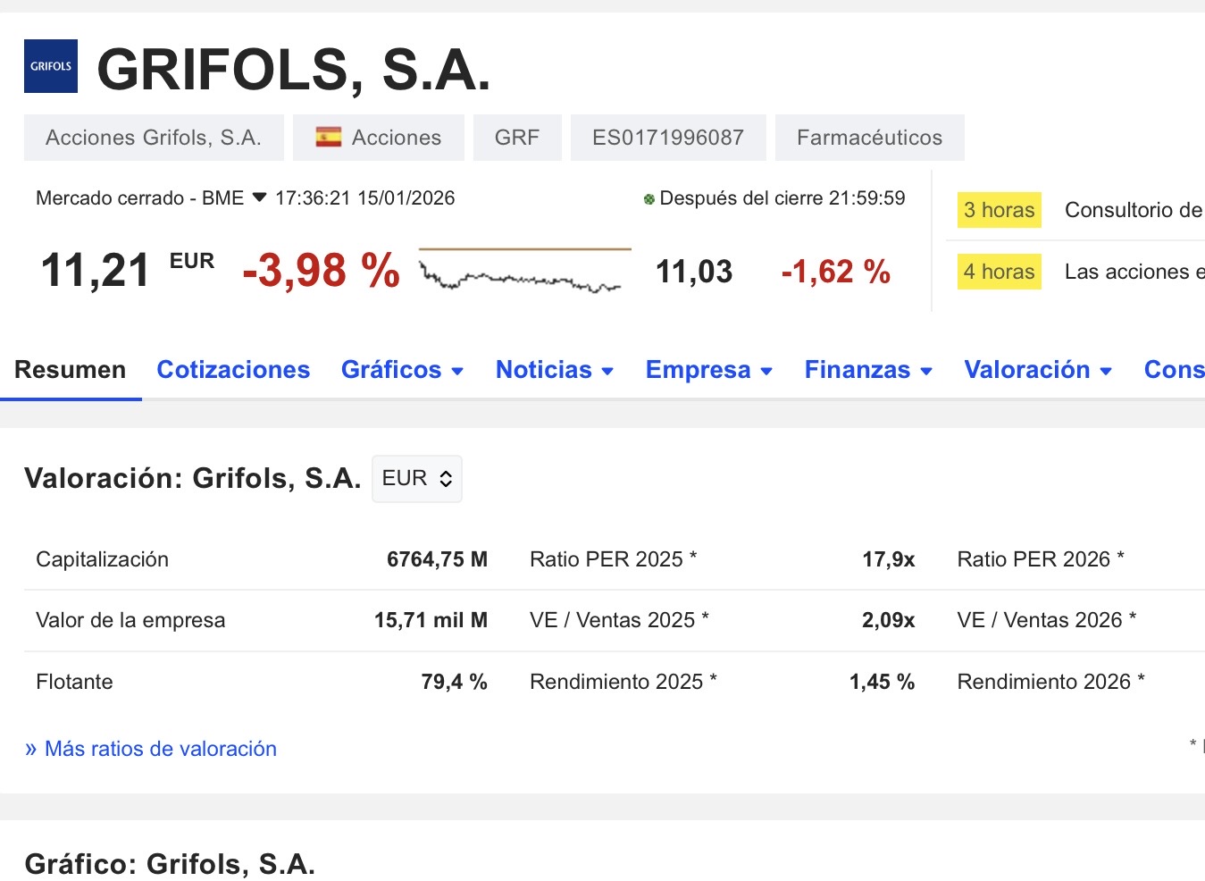 Vean la comparativa de Grifols (azul) y el Indice Pharma UE del cual forma parte la cotizada...