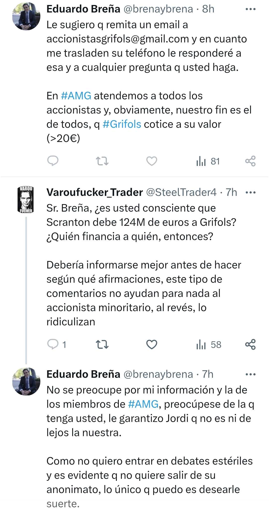 Ginés, creo que lo tienen entretenido y contra las cuerdas en twitter, según unas capturas que me mandan. Ayer Cyrus y hoy nuestro aliado en X, Varoufucker... Que por cierto, podría canviarse el nombre a Grifofucker . Un abrazo campeón