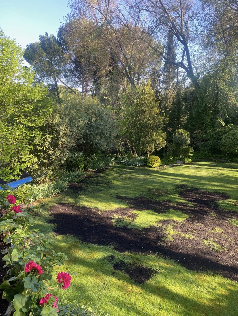 Aquí seguimos echando la semilla y ahuyentando palomas torcaces. Está don Prudencio, el búho rey, observándolo todo desde la copa del ciprés y esperando su oportunidad para comerse la semilla. También vinieron los patos salvajes de la piscina con cara de hambre.