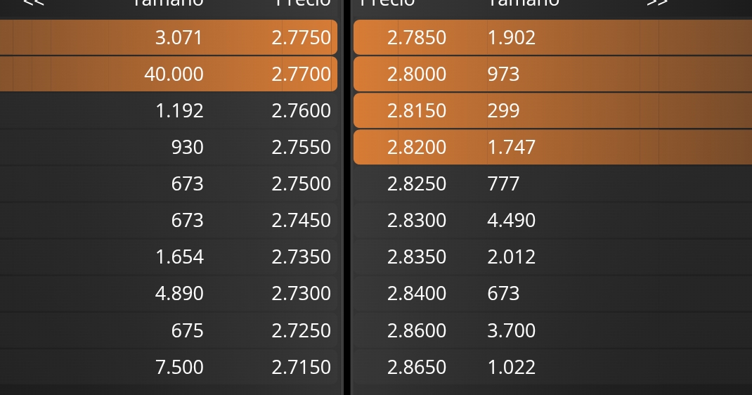 40k en 2.77 a la compra y nada a la venta