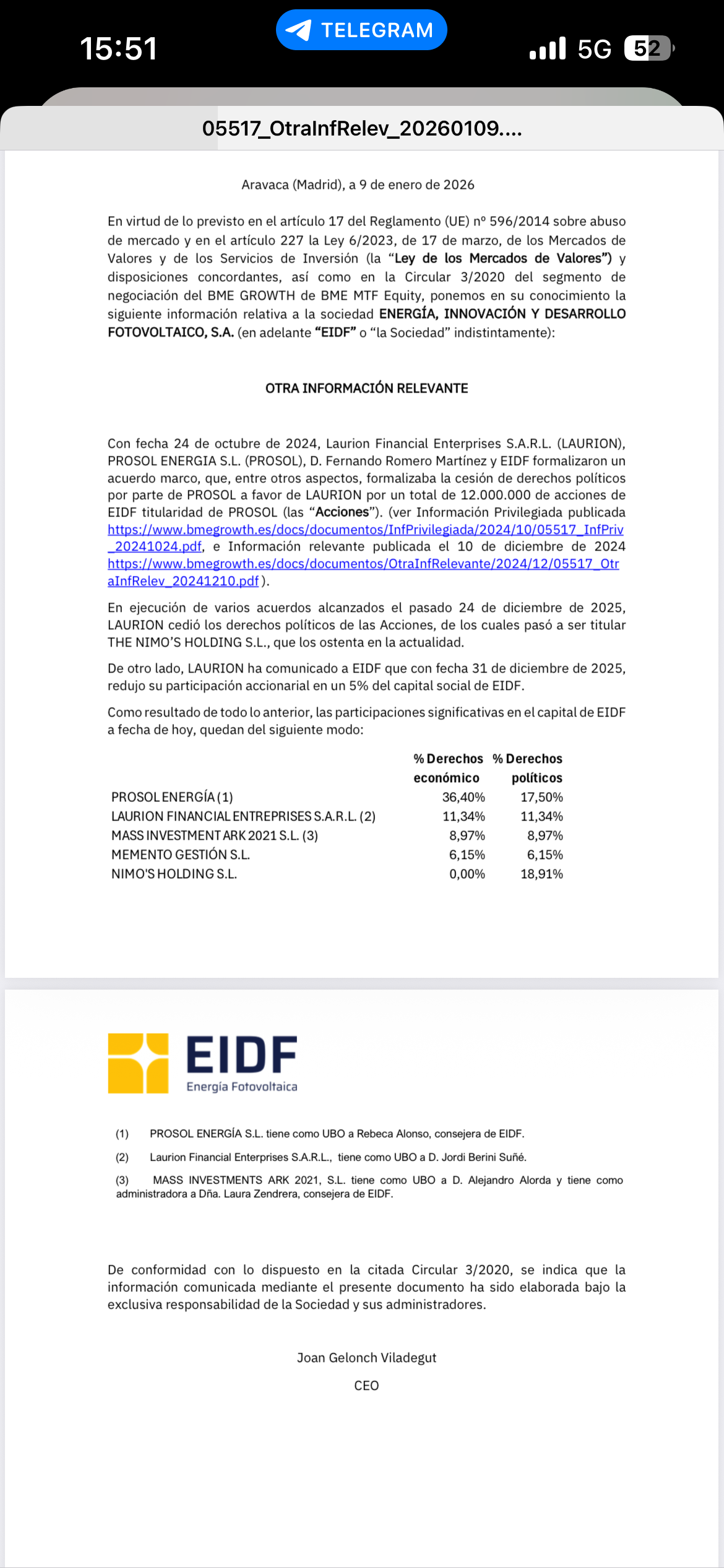 Por que de nada sirve intentar que EIDF suba a 1.50 si en 6 días te aprueban que te las compran a ese precio. Lo que hay que hacer es que suba greening y no eidf