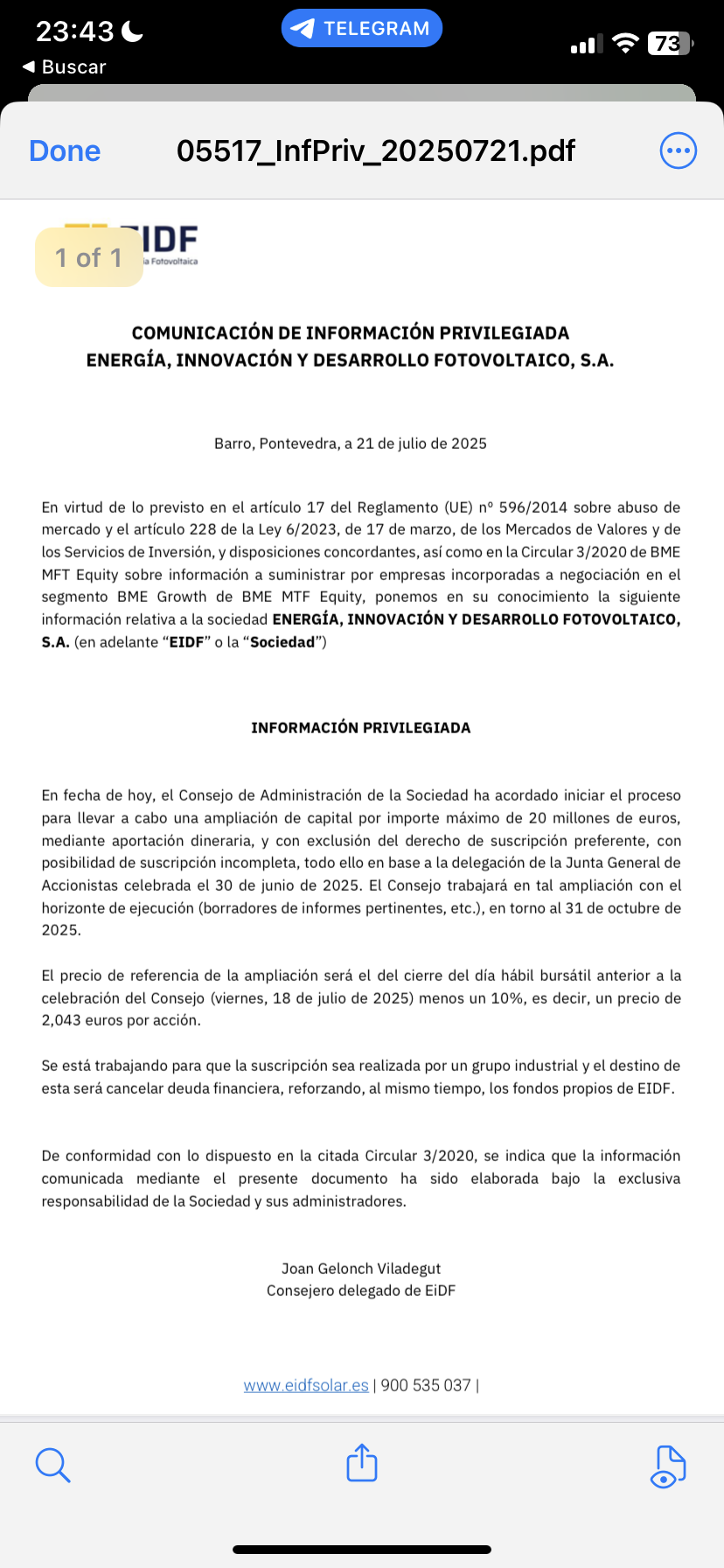 La empresa con necesidad de caja y DESTROZANDO al accionista minoritario por 1.5 millones de €. Y plantean AK para pagar la deuda de ANDBANK que es hasta 2030 en lugar de meter el dinero para crear negocio. Un absoluto sin sentido esta gestión.