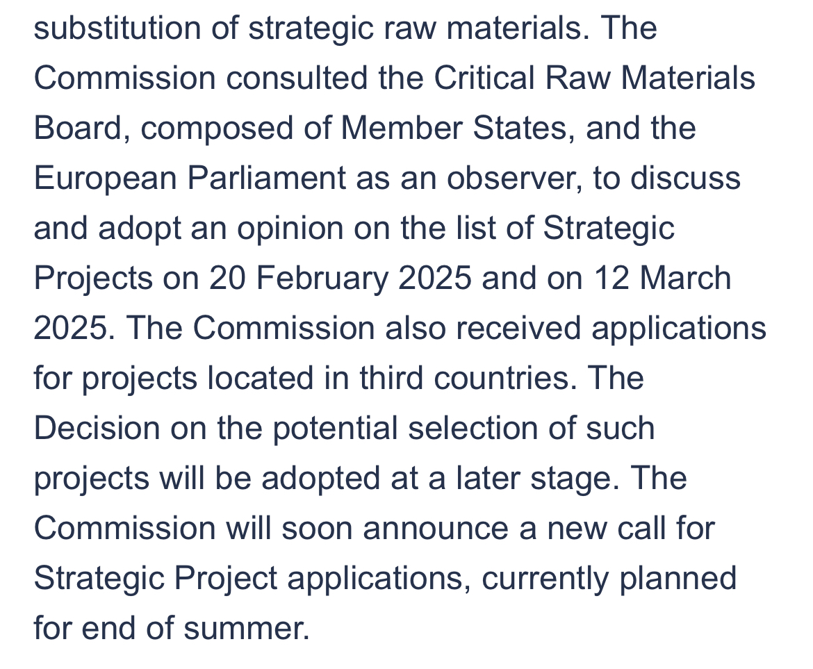 Recordatorio. Se darán a conocer aproximadamente a finales de verano nuevas aprobaciones de extracción de minerales estratégicos