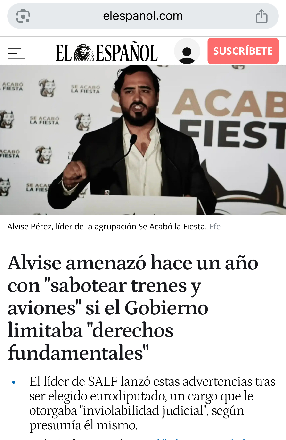 Pobre Alvise que va acabar con lsus huesos en la celda con Cerdán, Rato, Dani Desokupa, Alfama y el Novio de la frutera….no hay derecho…que la mujer de Sánchez siga en libertad por enviar dis correos pidiendo dinero para su cátedra. Que no es lo mismo que der catedrática jajajaja