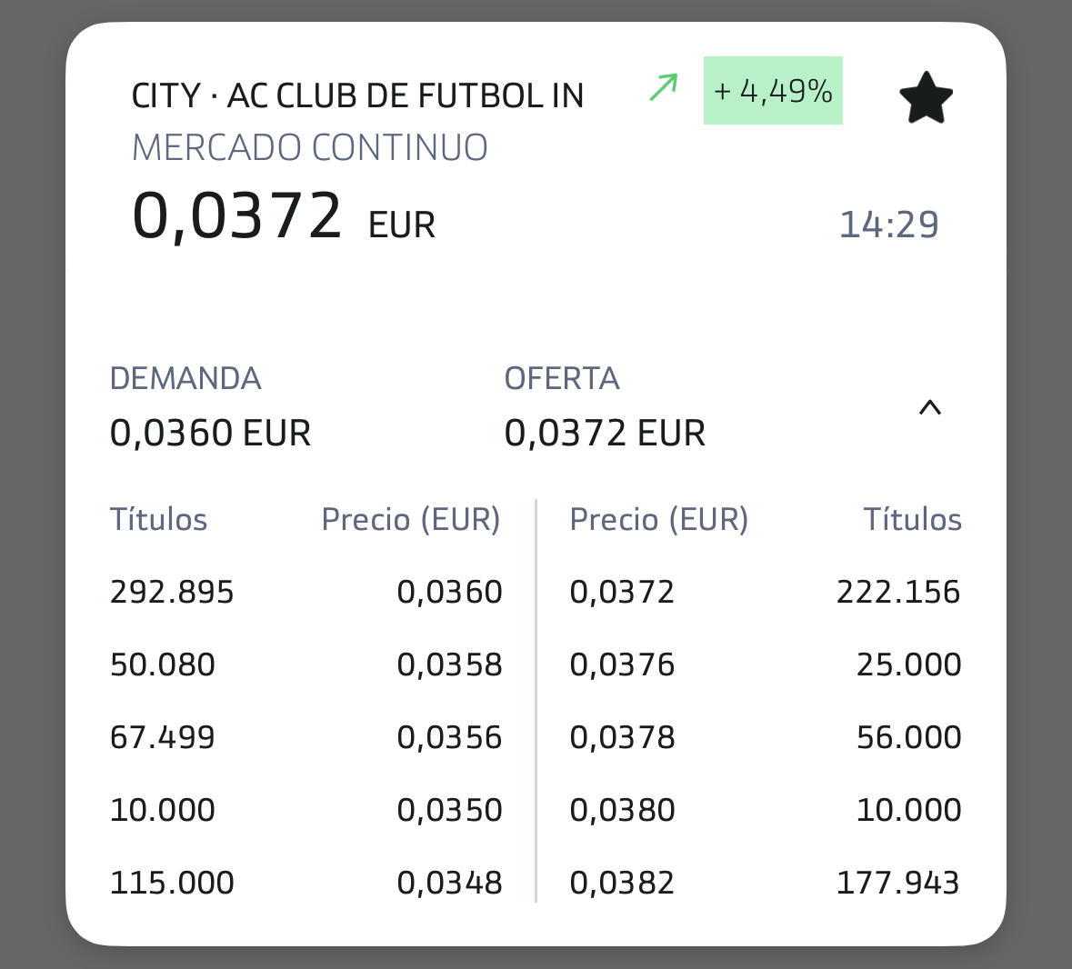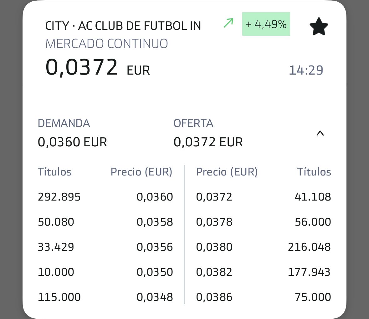 grafico de la accion Intercity CF