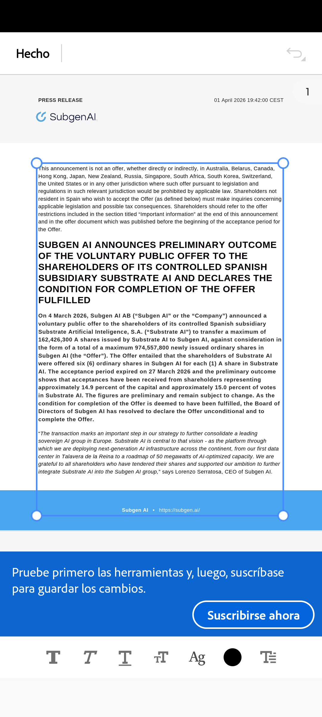 El tema es que con tantas acciones a estos precios, el Bitcoin tendría que subir una burrada siquiera para que la acción pudiese valorarse en 0.10. estás ampliaciones a 6, a 5, a 4 son legales a corto, medio y largo plazo.