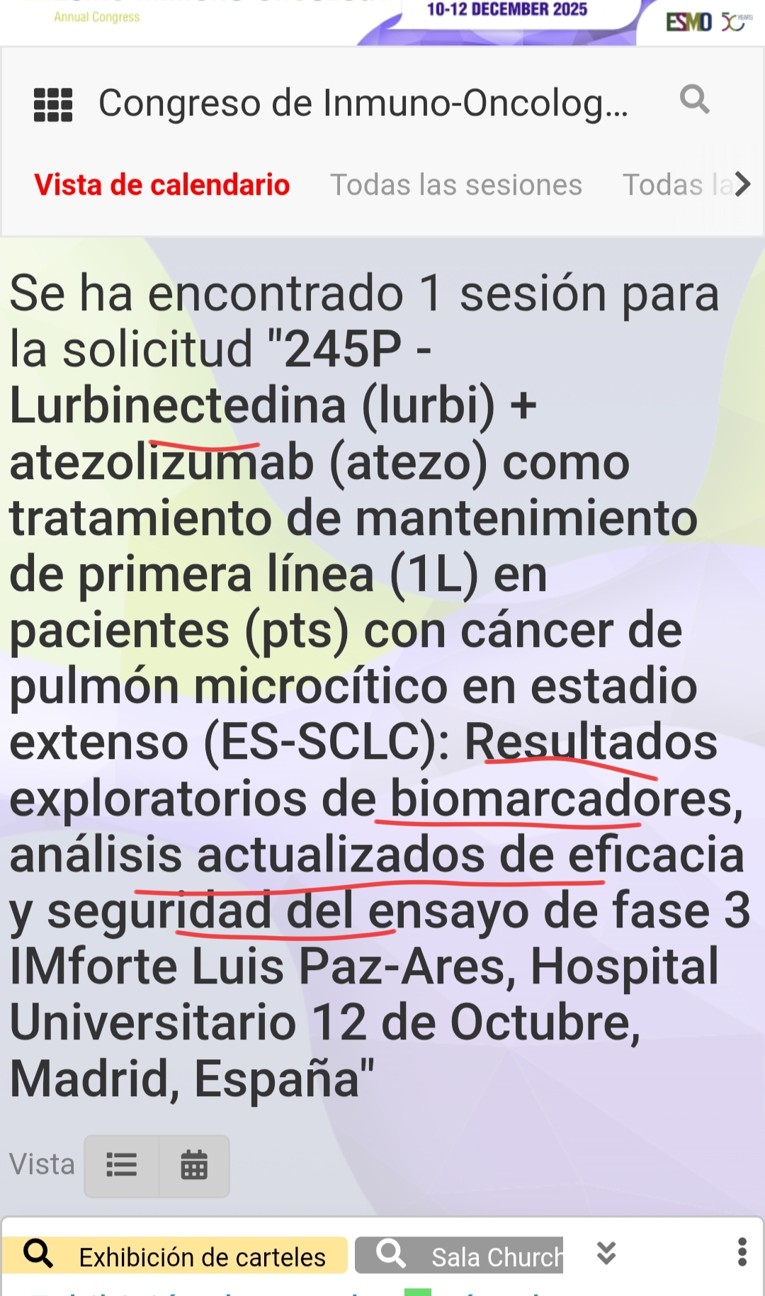 245P - Lurbinectedina (lurbi) atezolizumab (atezo) como tratamiento de mantenimiento de primera línea (1L) en pacientes (pts) con cáncer de pulmón microcítico en estadio extenso (ES-SCLC): Resultados exploratorios de biomarcadores, análisis actualizados de eficacia y seguridad del ensayo de fase 3 IMforte Luis Paz-Ares, Hospital Universitario 12 de Octubre, Madrid, España"