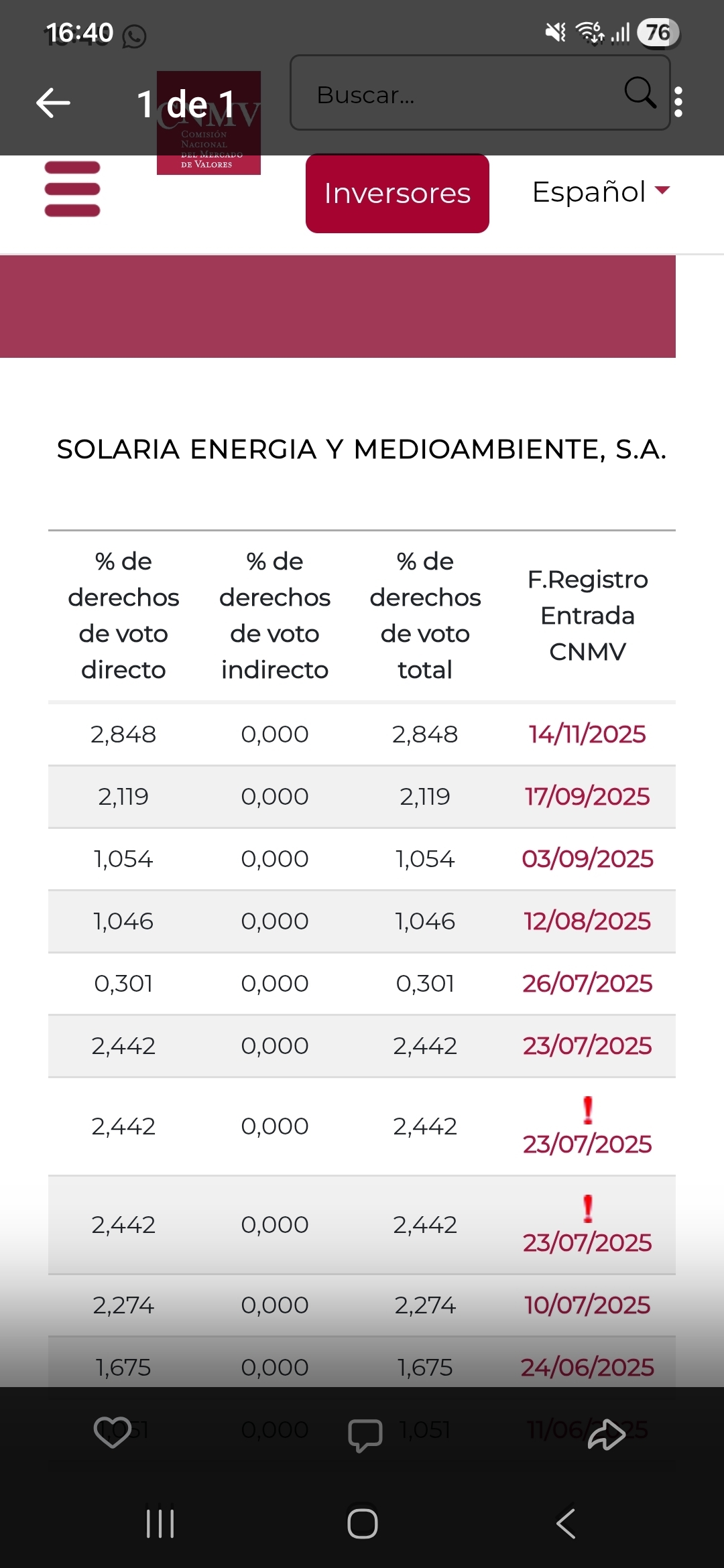 mira mi historial Registrado. la imagen que colge era de septiembre. No es nada nuevo que Solaria no cumpla plazos años atras pero este año parace que va cumpliendo. El año pasado todo lo contrario.