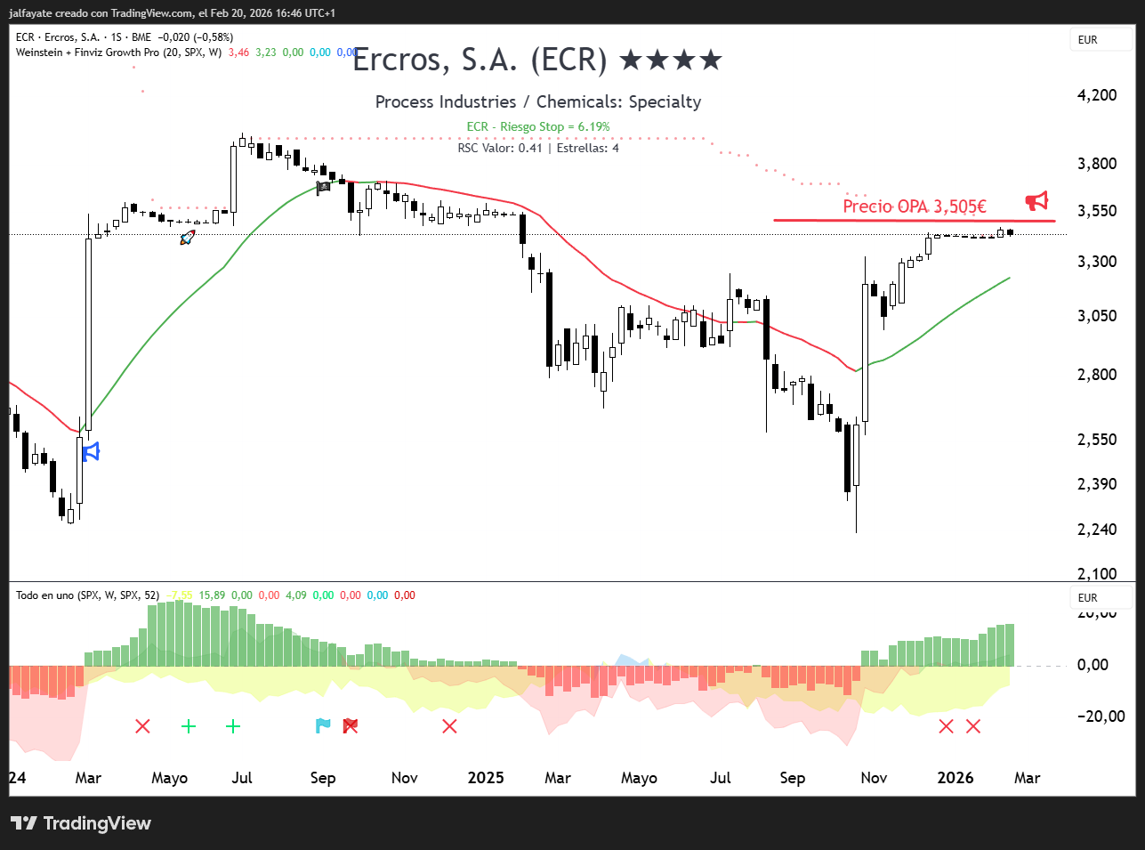 Ahora, con la escalada del conflicto en Irán, la inestabilidad geopolítica añade más presión: mayor riesgo de corrección en valores cíclicos como Ercros si no sale la OPA. Argumento a favor de aceptar: liquidez inmediata en un entorno donde nadie sabe cuánto durará esta tormenta energética.