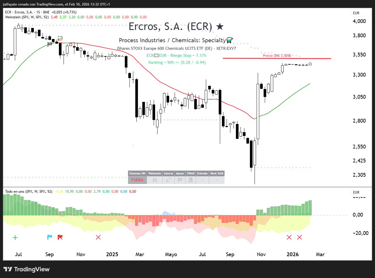 Lighthouse —la única firma de análisis que sigue cubriendo Ercros— se ha sumado a la ola de recomendaciones de acudir a la OPA a 3,505 €/acción. Lo ve como la mejor opción para evitar un posible desplome del 25-30% si la oferta fracasa y la acción vuelve a niveles pre-OPA (2,5-2,6 €), en un sector químico europeo muy débil. La semana pasada, la OCU ya aconsejaba lo mismo, priorizando la liquidez y el precio cierto frente a la incertidumbre.