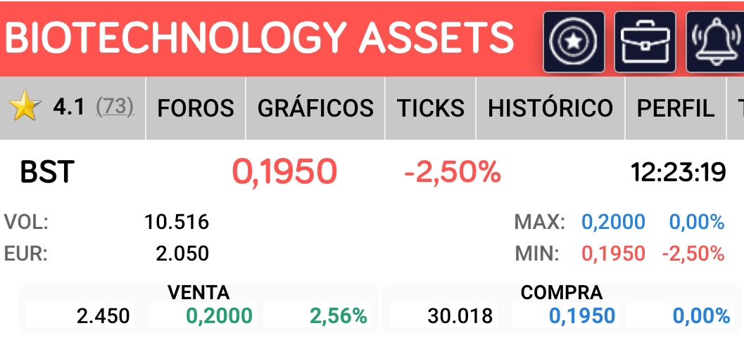 grafico de la accion BIOTECHNOLOGY ASSETS