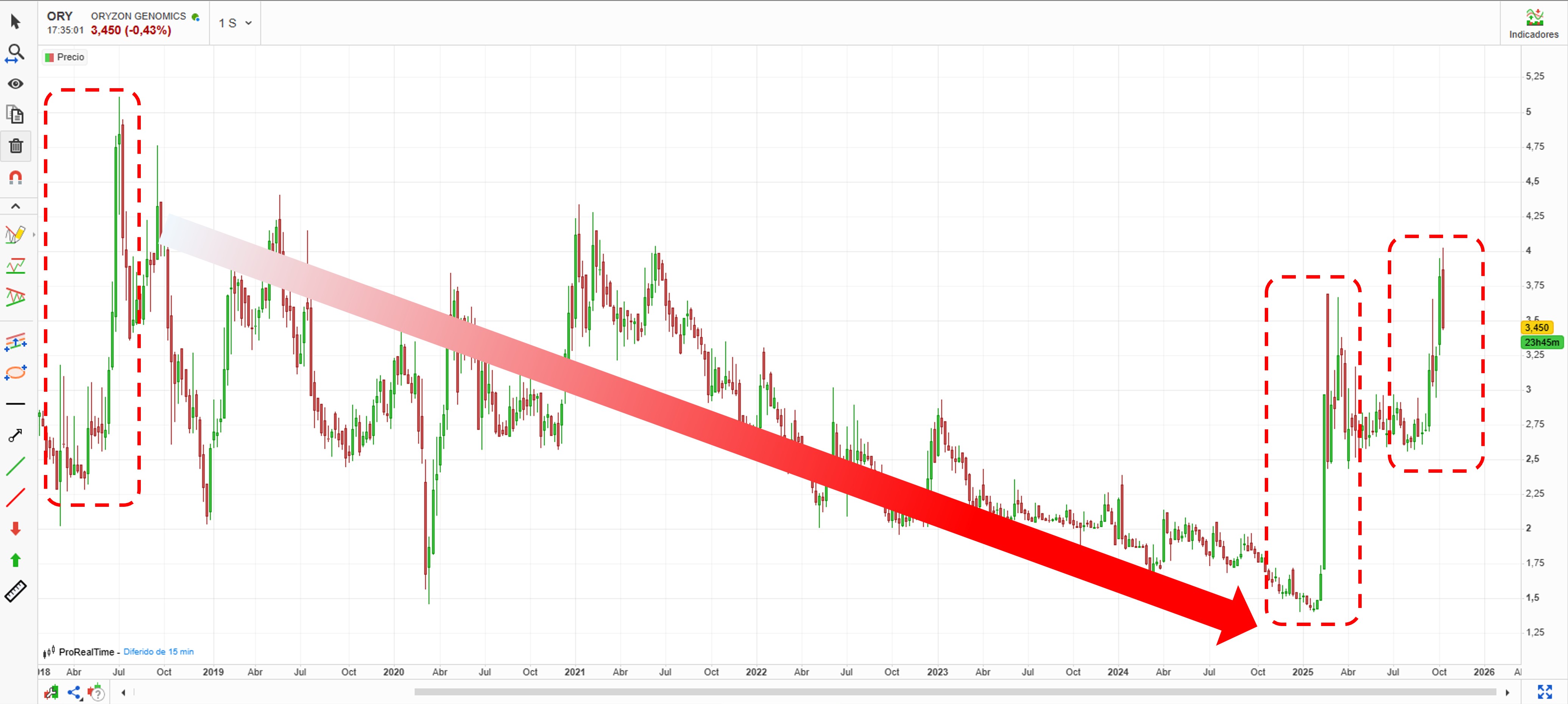 - Este último nivel (2,73%) se acerca al límite de lo que pienso daría por equivocada mi conclusión. Sin embargo, que nadie olvide que entre medio ORY ha pegado un salto desde el 3 de septiembre que llegó al 52%, que no es poco. Por ello, el incremento aún no me parece preocupante.