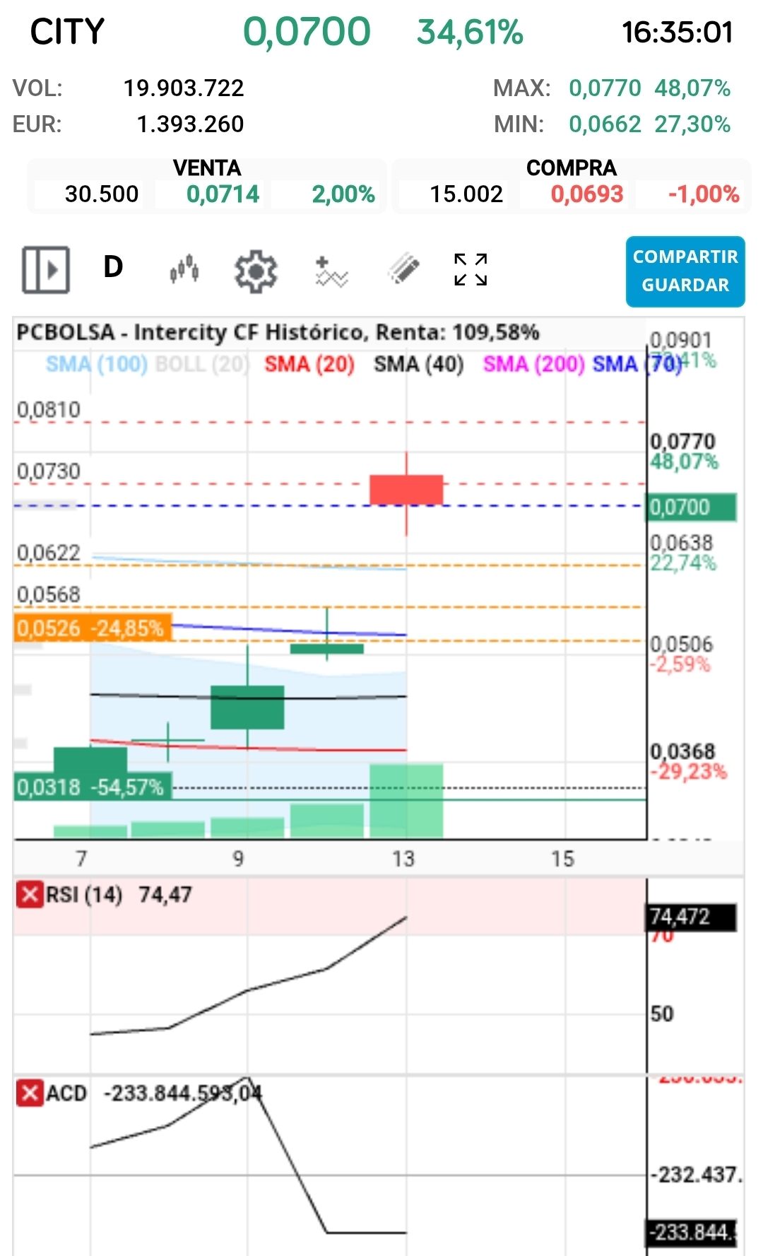 grafico de la accion Intercity CF