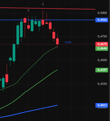0,4646 la SMA20, esperemos aguantarla hoy y mañana será otro día, la SMA40 en 44